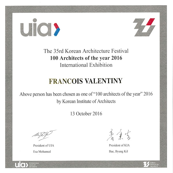 In October 2016 the 35th Korean Architecture Festival took place in Seoul South Korea; during the International Exhibition, architects from all over the world were invited to submit high quality projects for the award “100 Architects of the year”.