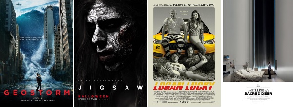 The new releases this week include The Killing of a Sacred Deer, Geostorm, Logan Lucky and JigSaw.