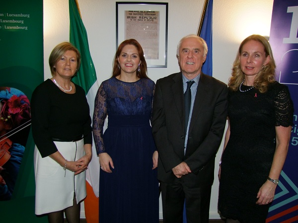 Irish soprano Celine Byrne is in Luxembourg this week-end for a Saturday evening fund-raising concert at the Centre Culturel Scheiss in the Val Ste Vroix in aid of Think Pink Lux, a local charity that supports women with cancer and their families; on Friday evening the Ambassador of Ireland to Luxembourg, Peadar Carpenter, hosted a reception at the Irish Embassy.