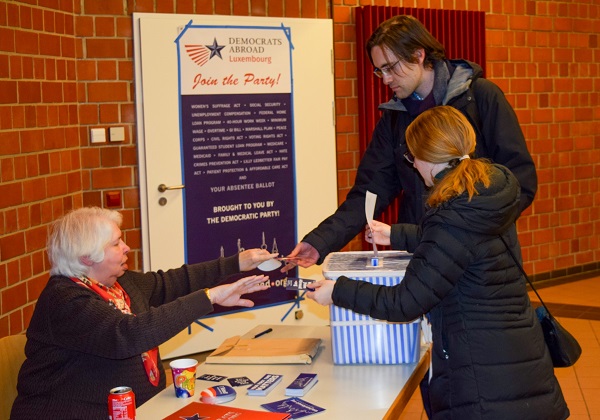 Americans in Luxembourg can still vote in-person on Tuesday 8 March from 18:00 to 22:00 at Bosso in Luxembourg-Grund, or by casting a ballot by email, fax, or post.