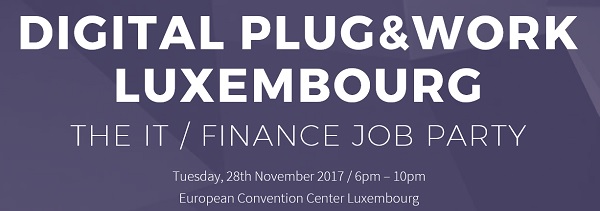 A new after-work recruiting event in Finance and IT in Luxembourg is being held on Tuesday 28 November 2017 from 18:00 - 22:00 at the European Convention Center in Luxembourg-Kirchberg.