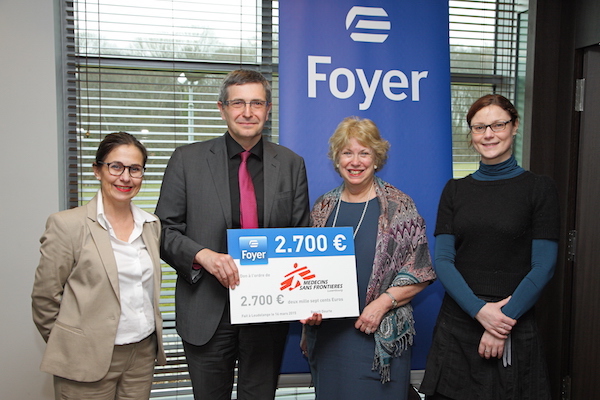 The Foyer Group has presented a cheque to Médecins sans Frontières (MSF) Luxembourg, with a value of €2,700, following the initiative of its employees in holding a charity auction of computer and technical equipment made available by the company.