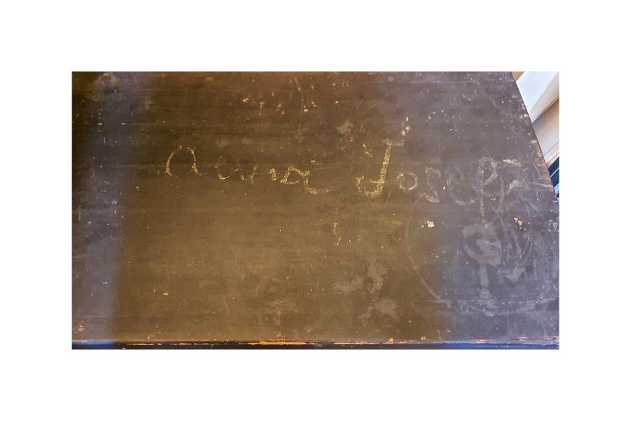 On her 2022 trip to Luxembourg to apply for citizenship, Nancy met Lilliane and Nico and went to the bakery building in Ettelbruck and saw the window of her aunt’s workshop. Nico showed her a photo of a large wooden chest that had belonged to Anna, who had written her name on the lid thinking she would be returning to resume her life in Ettelbruck.