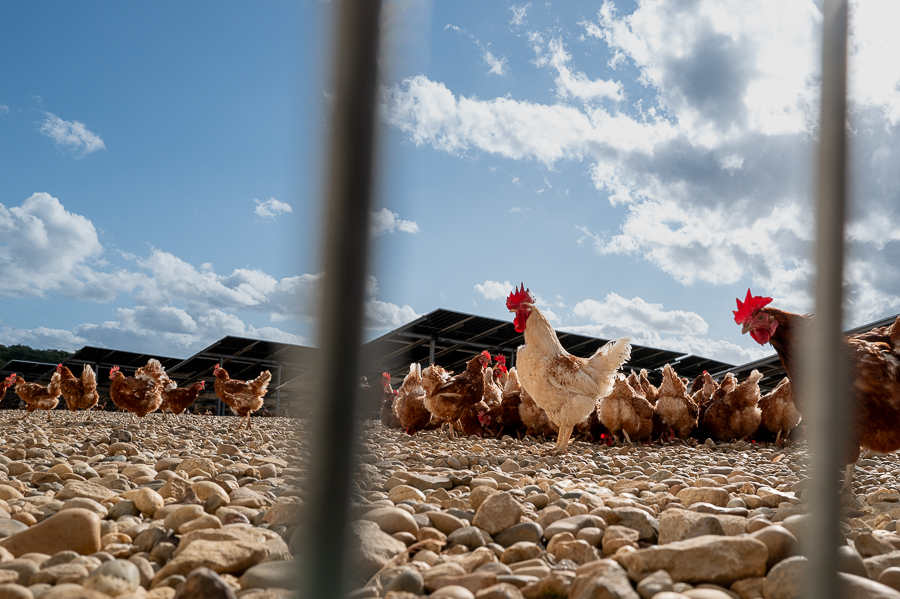 Luc Emering, the farmer at the site, explained that his family farm houses 6,000 chickens for organic egg production. “For us, the opportunity was there to make agri-photovoltaics because we can use our land in two different [ways]. On the one hand, it’s for the animals and their welfare. We have many wild birds [which pose a threat]. Since the photovoltaic [system] is here, we have less problems with these birds. […] On the other hand, it’s for energy production. For a family farm, it’s another economic income”. He also described some of the challenges of the project, particularly lengthy administrative procedures, but also costs. He said the investment is too great for a family farm: “We needed a partner who has the know-how and the financial capacity” to make the project feasible, “and there we found a good partner with Enovos”.
