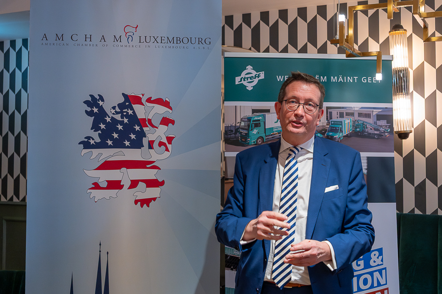 (L-R) Paul Schonenberg, Chairman and CEO of AMCHAM; Maurice Bauer, Deputy Mayor of Luxembourg City (VdL); Maximilian Chorus, General Manager of Streff;