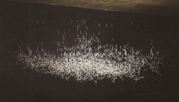 The artist first got rid of the pen and then the anecdote, developing her work in a more aerial and less figurative way; she has kept only the essential materials which she has carefully chosen. Her art form is silent, allowing for reflection and meditation.