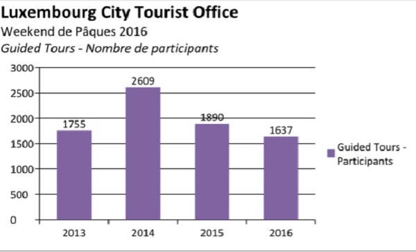 The Luxembourg City Tourist Office (LCTO) has noted a decline in the number of people participating in touristic events during the 2016 Easter weekend compared to the same period the previous year.