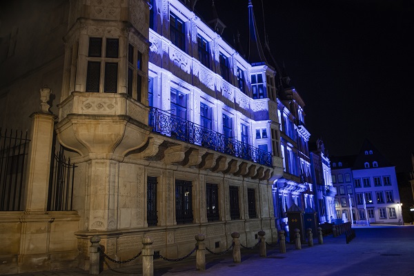 Their Royal Highnesses the Grand Duke and the Grand Duchess of Luxembourg have expressed their support for World Autism Awareness Day by illuminating the facade of the Grand Ducal Palace in blue, from 28 March to 3 April 2022.