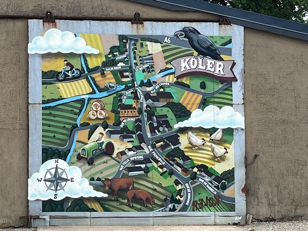The most striking thing about Kahler is the number of large murals and colourful street art scattered around the village - the columns supporting the bridge over which the motorway passes are also painted with murals - which fit within the project "Make Koler Kooler". About six years ago, in early 2017, local artist Alain Welter teamed up with some colleagues to brighten up the village with works of urban art, an idea which inspired other residents to transform the old school into the Kinoler cinema. The village also boasts its own Hollywood-style "Koler" sign.