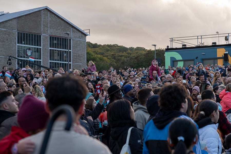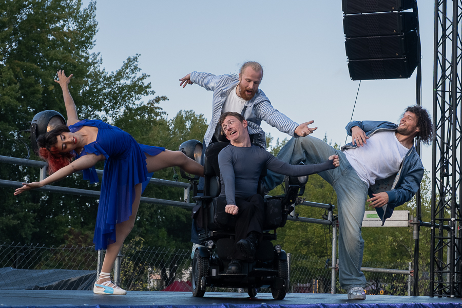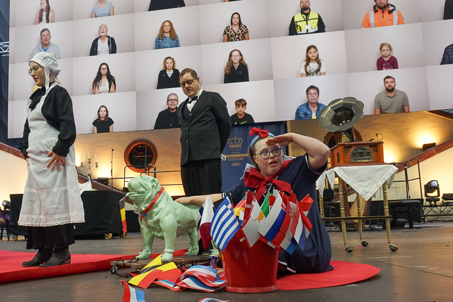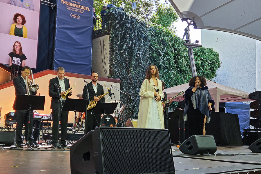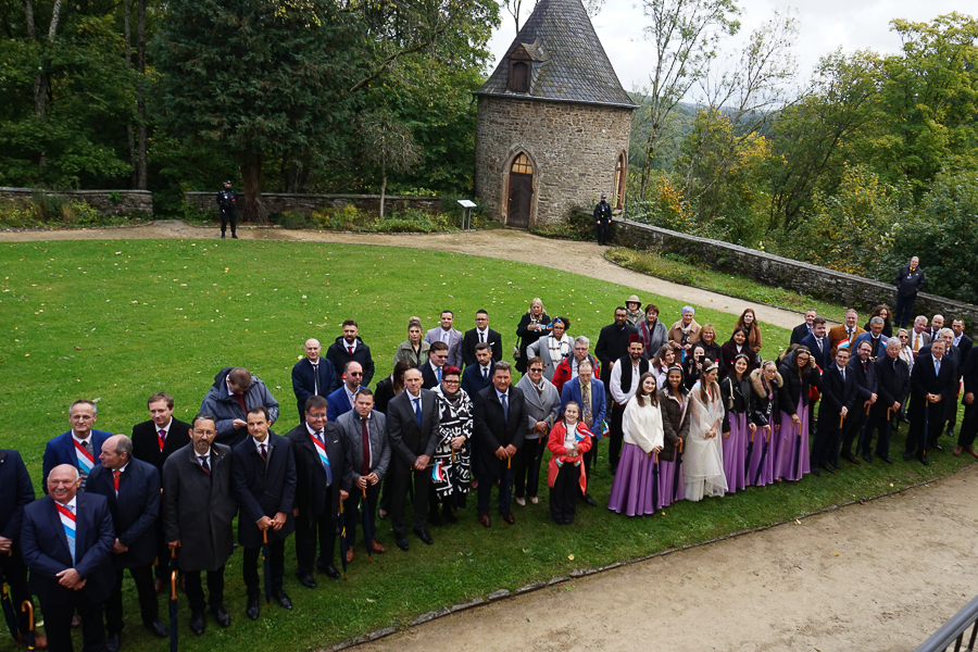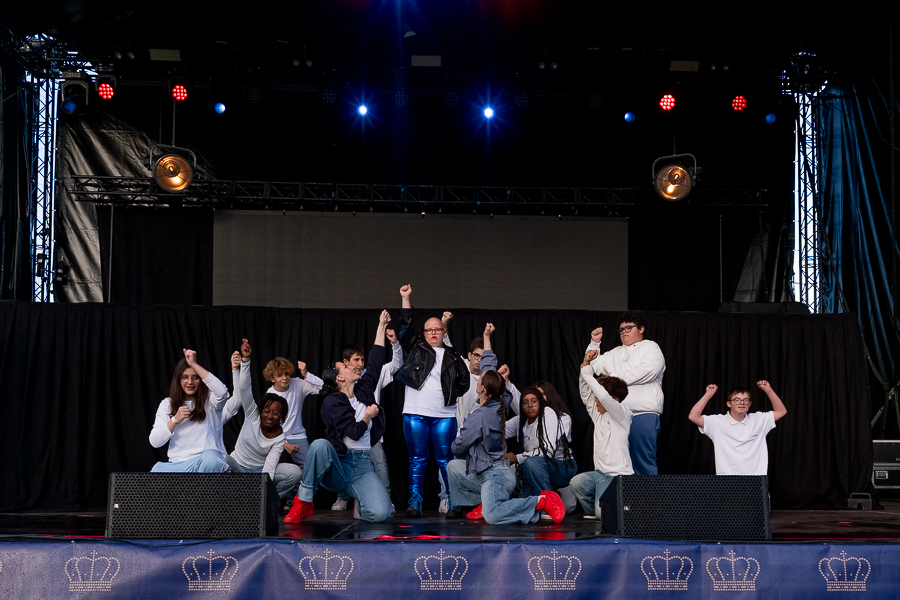 At Wiltz Castle, the Grand Ducal family were welcomed by table tennis champion Ni Xialian and writer Mike McQuaide (“An American in Luxembourg”), Mayor Carole Weigel and municipal officials, Luxembourg’s Minister of Agriculture, Food and Viticulture, Martine Hansen, and the Minister for Culture, Eric Thill, as well as invited guests, local association representatives and randomly selected Wiltz residents. Hundreds of people gathered at the amphitheatre to watch an inclusive theatre performance by “com-guck”, an interactive video projection from the “Schwätz mam Grand-Duc” (Speak with the Grand Duke) project and music from the Pueri Cantores youth choir and Naomi Aye & Band. The musicians performed a specially composed collaborative final piece before the Grand Ducal couple received another symbolic gift. The festivities continued in Wiltz after their departure around 15:30.