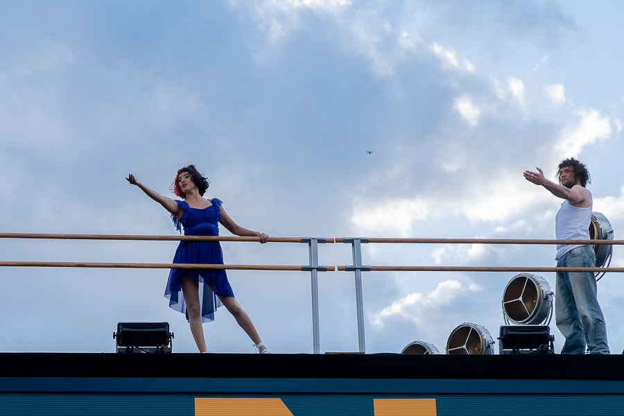 Around 17:40, the tour continued in Dudelange, in southern Luxembourg, where the Grand Ducal couple attended a dynamic street performance in Place Thierry Van Werveke, telling the story of the south through dance, acrobatics, freerunning, percussion, circus, music and spoken word. They were welcomed by athlete Patrizia Van der Weken and actor Jules Werner, as well as Mayor Dan Biancalana and other local officials, Ministers Hahn, Deprez and Roth, plus the Minister of Education, Children and Youth and Minister of Housing and Spatial Planning, Claude Meisch, and the Minister of Sport and Minister of Labour, Georges Mischo.