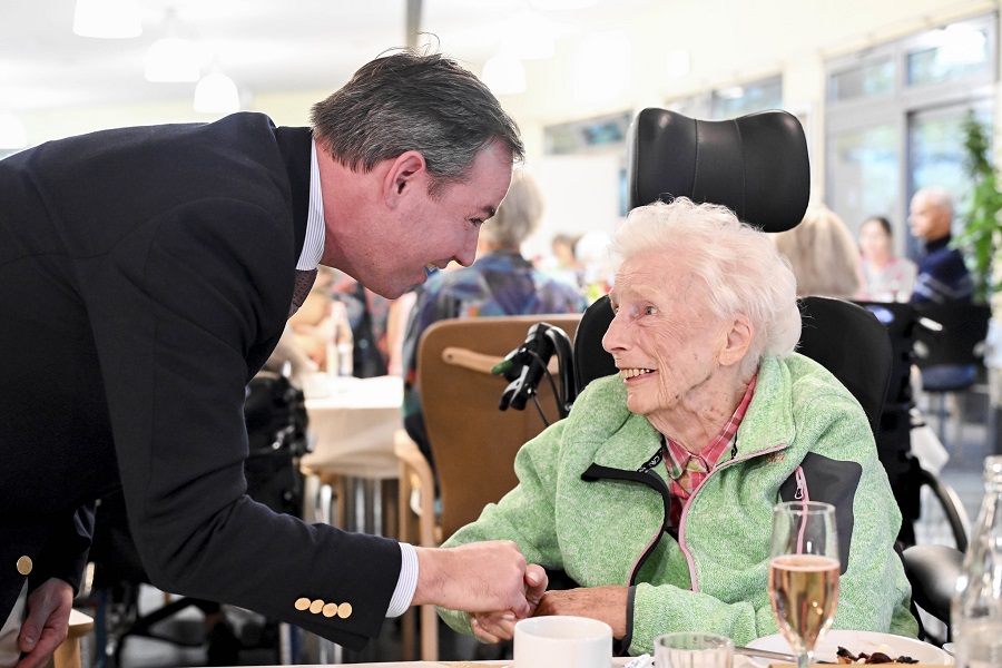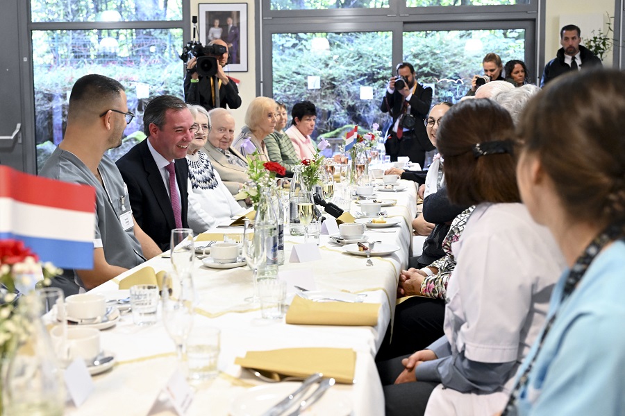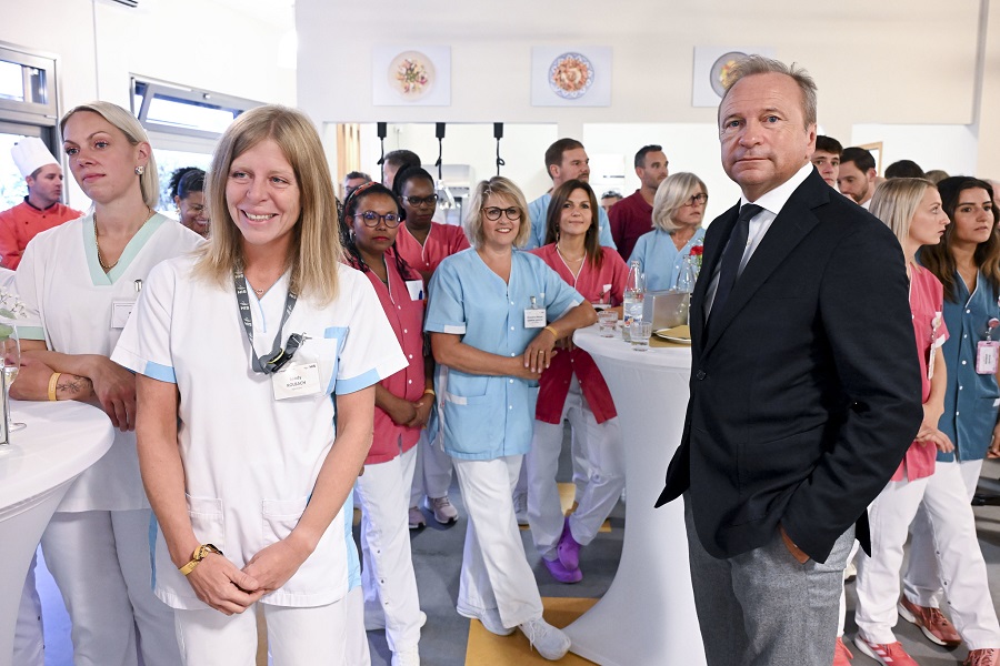 The Grand Duke next visited the intermunicipal hospital (HIS) in Steinfort, in western Luxembourg. He held a private exchange with healthcare workers and patients, paying tribute to their role in society. He was welcomed by Luxembourgish chef Léa Linster, Mayor and HIS President Sammy Wagner, HIS Director General Luc Gindt, the Minister for Family Affairs, Solidarity, Living Together and Reception of Refugees, Max Hahn, the Minister of Health and Social Security, Martine Deprez, and the Minister of Finance, Gilles Roth.