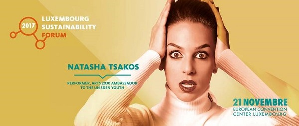 Arts 2030 Ambassador to the UN SDSN Youth, Natasha Tsakos, is an interactive designer and a talented engaged artist who is confirmed to perform at the opening of the Luxembourg Sustainability Forum 2017 on Tuesday 21 November 2017 in the Abbaye de Neumunster in Luxembourg-Grund.