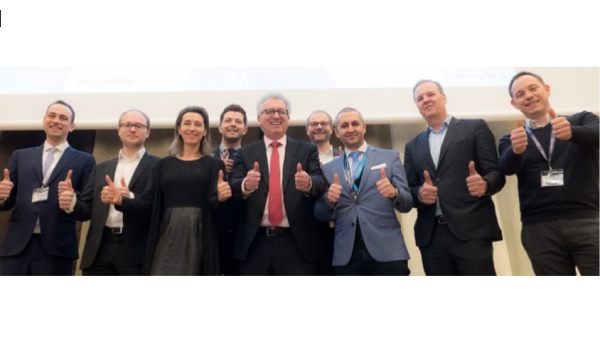 (L-R): Alex Lawrence; Oliver Schimek; Laure Morsy; Mark Schmitz; Minister Pierre Gramegna; Holger von Keutz; Alex Panican; Cees Vermaa; Olivier Seli;