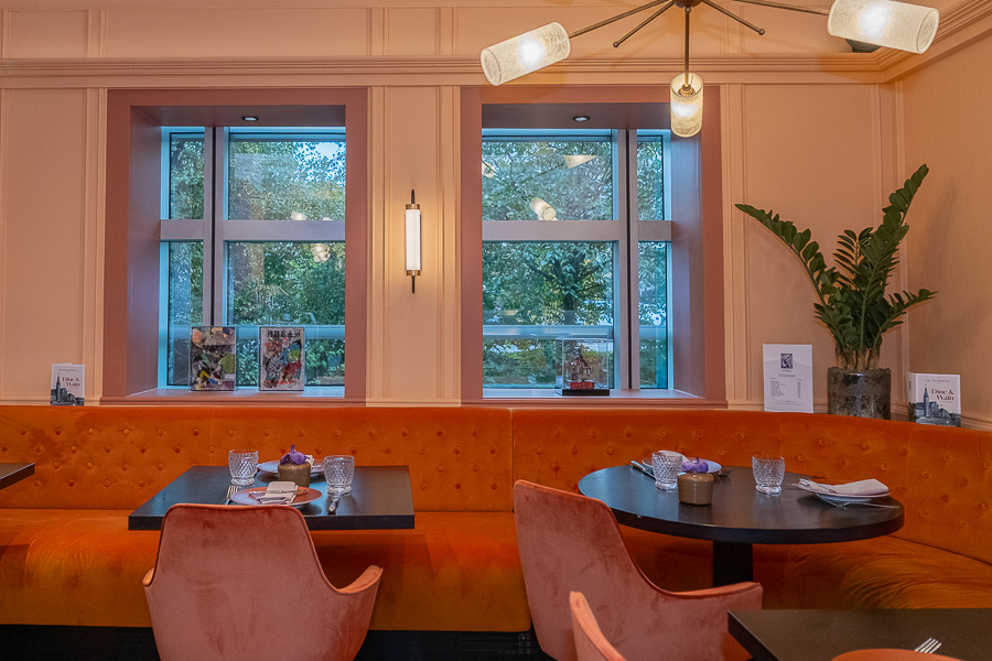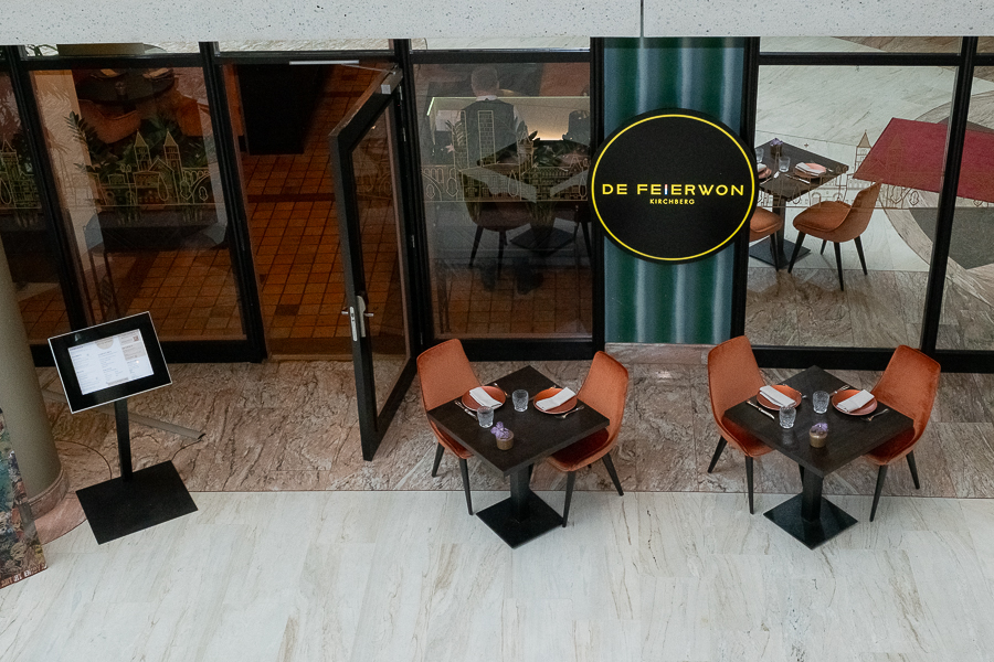 On Monday this week, the 40-covers restaurant De Feierwon (which translates to "steam locomotive") held a press lunch at which the new windows allow in natural light, a stark contrast to be previous rustic interior.