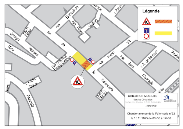 VdL Announces Temporary Closure of Avenue de la Faïencerie on 15 November