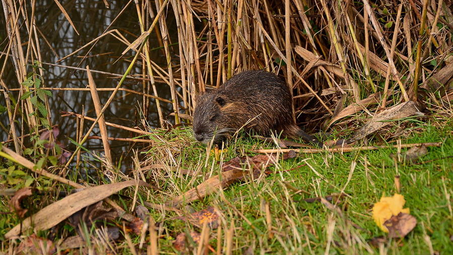 Brill is an ideal place to observe the coypu, especially at sunrise or sunset when it emerges from its burrow to feed. It is often seen swimming slowly on the surface or nibbling on plants along the shore. In winter, with reduced vegetation, it becomes easier to spot. Its burrows and feeding traces, such as gnawed stems, are also good indicators of its presence.