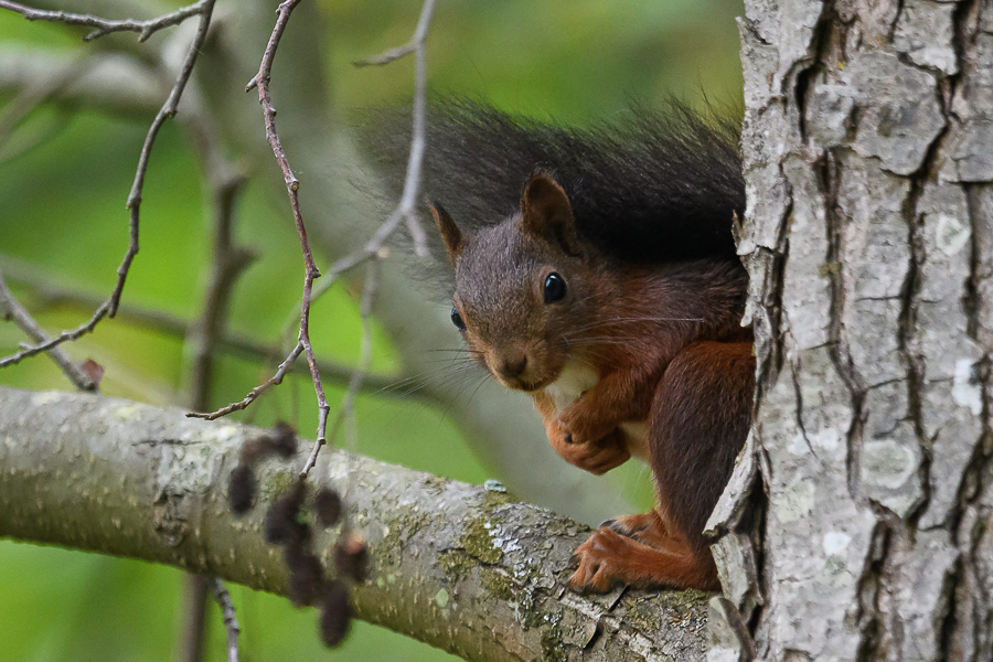This open landscape, dotted with meadows, hedgerows, and fruit trees, is a valuable refuge for the squirrel, offering both shelter and food. Meadows grazed by cows in summer prevent the overgrowth of dense hedges while maintaining ecological balance. Forest edges and mature fruit trees provide nesting sites, hiding spots, and vantage points for this active animal throughout the year.