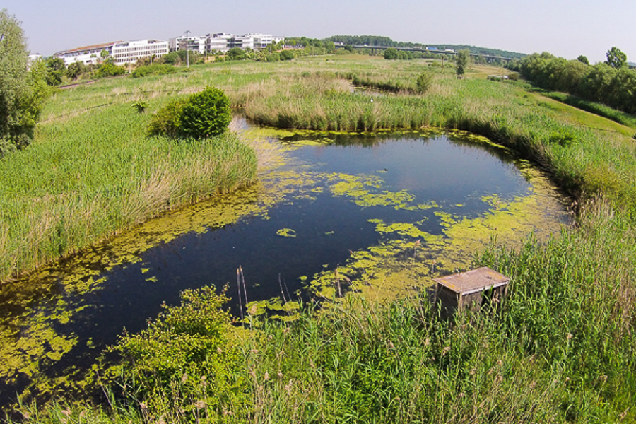 Kingfishers mainly frequent rivers, ponds and wetlands rich in fish. The Schlammwiss nature reserve, located in the Syr valley, is one of their favourite habitats in Luxembourg. This wetland, shaped by pools, reed beds and the river, is home to exceptional biodiversity. Created and managed to protect the fauna and flora of aquatic environments, Schlammwiss has become a true sanctuary for many species, including the kingfisher.