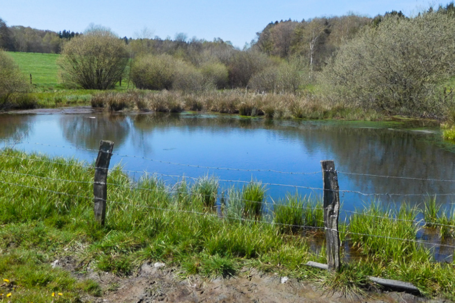 The bog is framed by wet scrublands and bistort meadows, providing vital breeding grounds for two species considered glacial relics: the Purple-edged Copper (Lycaena helle) and the Marsh Fritillary (Boloria eunomia). The site holds historical entomological significance, as it was here that the first observation of Lycaena helle in Luxembourg was recorded in 1978 by entomologist Marcel Hellers. Additionally, the site features several ponds, one of which hosts the Great Crested Newt (Triturus cristatus), a species relatively common in the Gutland but extremely rare in the Oesling region.