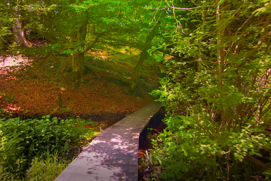 At the heart of Kaleburn lies a peaty lowland bog, formed due to a perfect storm of specific site conditions: the location within a depression on the high Ardennes plateau, poorly draining soils that promote rainwater accumulation, high local rainfall and low average temperatures. This environment allowed Downy Birches (Betula pubescens) to colonise the area, notably growing with Sphagnum moss sleeves surrounding their trunks — the very mosses responsible for peat formation. Comprehensive surveys have identified a total of 61 moss species, including nineteen different Sphagnum species. This peaty Sphagnum birch wood is an extremely rare habitat in Luxembourg, enjoying protection at both national and European levels, underscoring its status as a priority bryological hot spot.