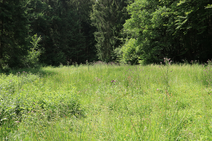 Ecological management focuses on restoring these delicate habitats. A significant portion of conifers growing in wet conditions along a tributary of the Bëttlerbaach, heading toward Harlange, was previously removed during an Interreg project. Currently, the lean meadow is being restored for very extensive grazing using horses. The wet scrublands require regular, spaced maintenance; in 2022, teams from the Forum pour l’emploi undertook manual clearing to enable mowing with a Softrak machine. This targeted management prevents scrub encroachment and maintains open areas.