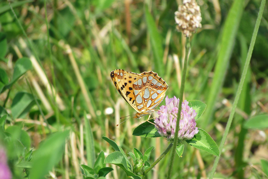 The reserve hosts characteristic wetland species. Marsh Cinquefoil (Comarum palustre), with its striking reddish-purple flowers, thrives in very wet areas like marshes and peat meadows, attracting wild bees and bumblebees. Horsetails, such as Water Horsetail (Equisetum fluviatile), are considered "living fossils," being the last survivors of a diverse Carboniferous group that once included tree-sized species reaching 30 meters tall. The Brown Argus (Issoria lathonia) butterfly is recognisable by its bright, pearly spots underneath its hindwings and is tied to wild violets for oviposition. While the un-grazed wetlands, such as the small "Aelbert" tributary valley, require regular maintenance, often done manually, the overall management aims to balance openness with habitat variety.