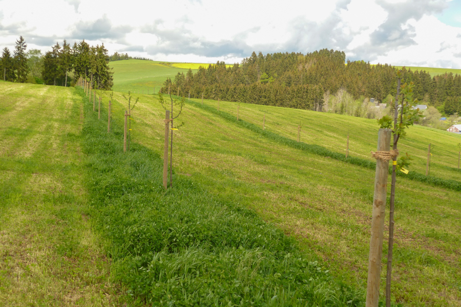 A key element of the restoration is the establishment of two conservation orchards comprising 230 fruit trees, specifically 115 old varieties of plum and cherry trees. These are managed using the principles of agroforestry, an ancient practice that had largely disappeared from the region. The wide spacing between the trees allows for crops to be grown underneath, offering significant advantages in terms of both biodiversity and agronomic yield. Beyond the orchards, the Ardennes landscape is ecologically enhanced through the creation of new habitats and essential ecological corridors, including hedges, solitary trees, copses, ponds, grassy strips and fallow land.