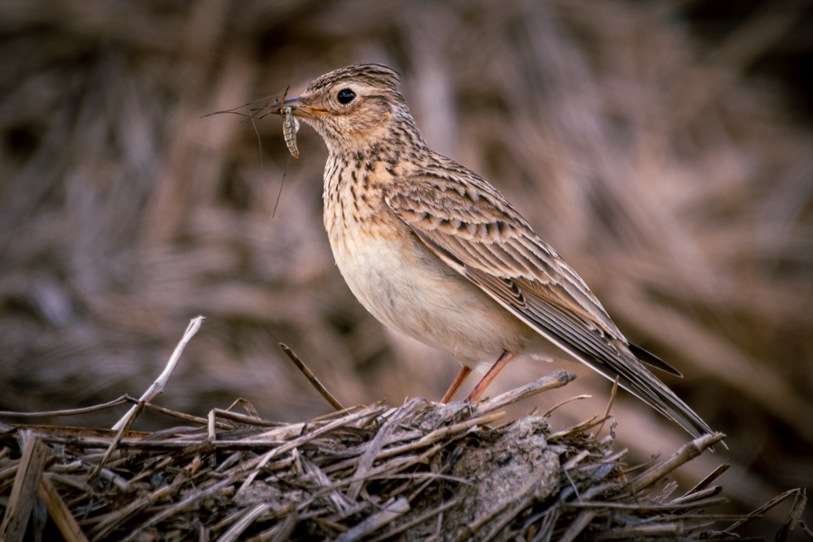 The success of the structural changes is reflected in the return of species. The European Spindle (Euonymus europaeus), a small, toxic shrub with highly decorative orange-pink capsule fruits (known locally as "Pafenhittchen" or bishop's bonnet), is now a common feature in the newly planted natural hedges. In the open skies above the Wincrange plateau, the elegant Red Kite (Milvus milvus) - easily recognisable by its deeply forked tail and white underwing patches - hunts small rodents. The landscape also welcomes the return of the Skylark (Alauda arvensis), whose population suffered a dramatic collapse of nearly 60% over the last two decades due to changes in farming practices and a decline in insect populations.