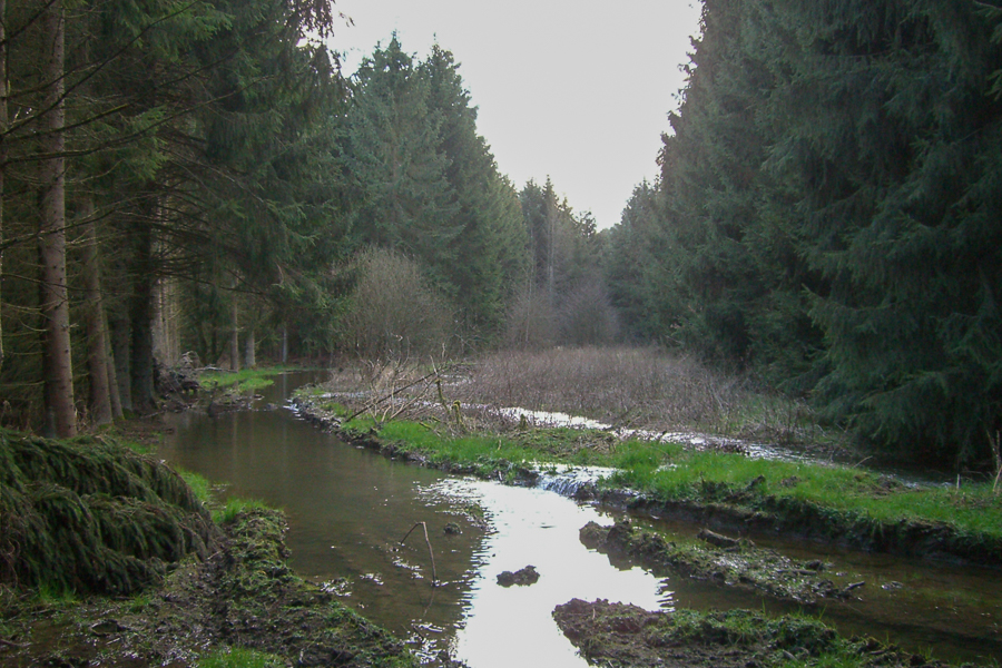 Valley floors that are managed through mowing and grazing are exceptionally rich in animal and plant species. Due to their linear nature, these areas play a vital role as communication and migration corridors for wildlife between their various habitats. Near Clervaux, the site known as "Auf der Woltz" was the scene of a spectacular restoration operation under the cross-border INTERREG IIIA - TRANSNATIONAL ECOLOGICAL NETWORK project, aimed at converting resinous valley floors and spring areas.