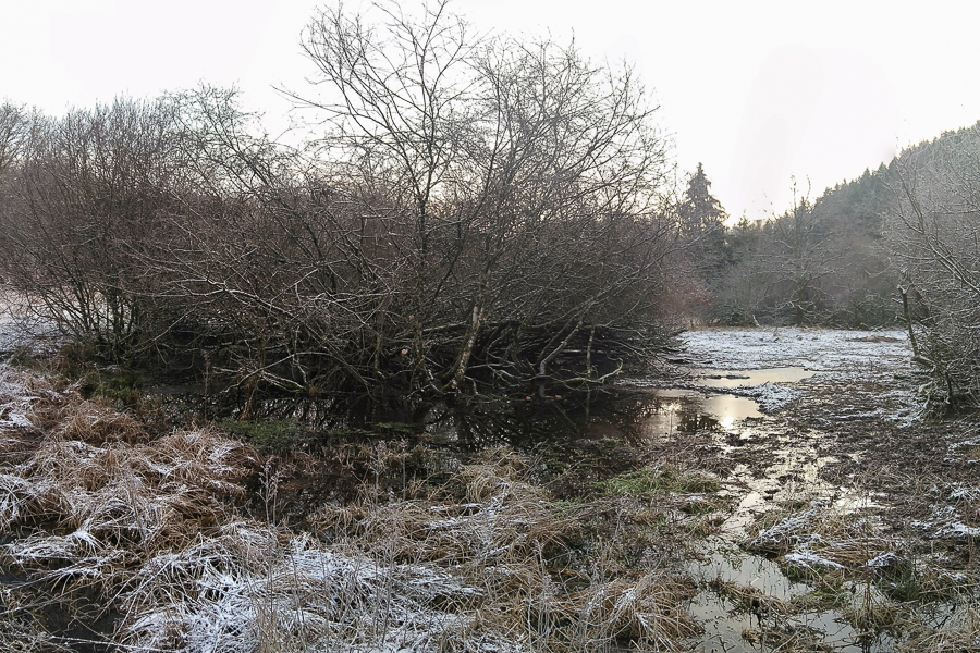 The former meander, now disconnected from the Sûre, has developed into valuable lowland marsh wetlands and bistort meadows. Today, this area is recognised as one of the key hotspots for the Purple-edged Copper butterfly (Lycaena helle). The LIFE Éislek project implemented several crucial actions to improve site management, including the clearing of scrub from the central zone and the installation of new fencing to facilitate extensive grazing. Pioneering plants in the shallow water, such as Bogbean (Menyanthes trifoliata), benefit from the opening up of the wetlands after the removal of inappropriate spruce trees.