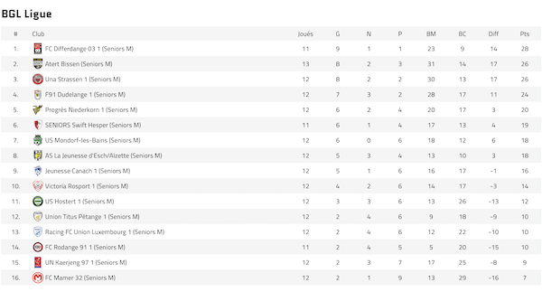 The win allowed Atert Bissen to move up to second place in the BGL Ligue standings with 26 points, taking advantage of the postponed fixtures across the league. Current champions FC Differdange 03 remain top of the table on 28 points after eleven matches played.
