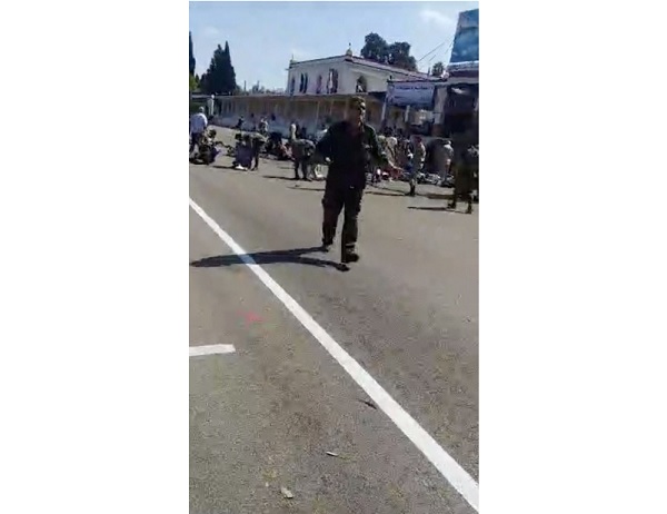 Footage shared with Reuters through the messaging app WhatsApp showed people (some in fatigues and others in civilian clothes) lying in pools of blood in a large courtyard.