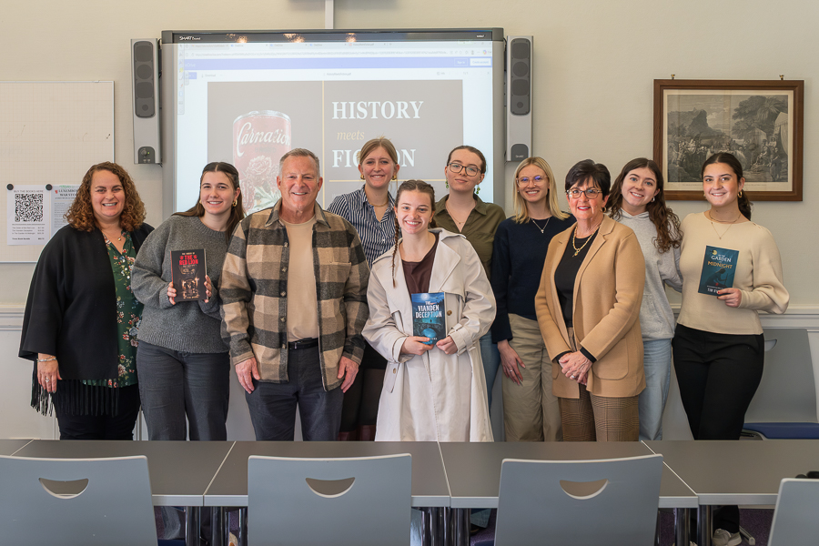 On Tuesday 17 March 2026, after a morning session at St George's International School in Luxembourg-Hamm, Tim Byers and his wife Mary visited the third-level educational institution, the Miami University John E. Dolibois European Center (MUDEC) in Differdange, where he made a presentation entitled "History Meets Fiction" which evolved into an interactive session with significant student engagement.