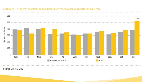 Apart from January, February, June and July 2020, when the number of deaths was lower or equal to that recorded on average over the last two years, a higher number of deaths was observed last year than that previously. More specifically for the month of November 2020, STATEC recorded 149 excess deaths compared to the 2018/19 average (up 34.9%)