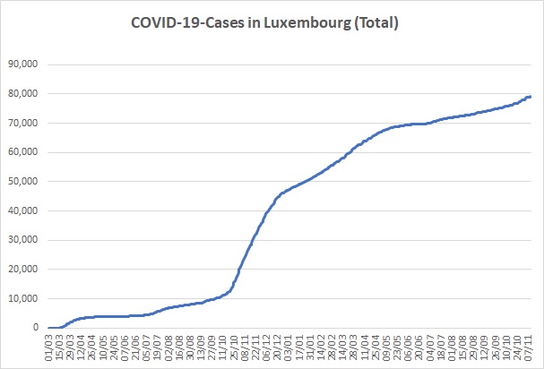 On Wednesday 10 November 2021, Luxembourg's Ministry of Health reported 347 new COVID-19 (coronavirus) infections; there have been 852 fatalities (no new deaths since Tuesday) resulting from the virus to date.