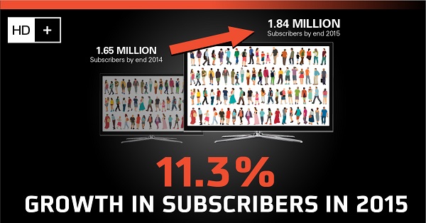 HD+ had 1.84 million subscribers at year-end 2015, compared to 1.65 million at year-end 2014. In addition, HD+ had over 1.1 million customers in their six-month free-trial period.