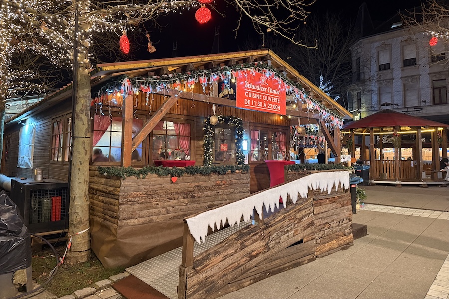 Next up is the “Chrëschtmaart” (Christmas market) in Differdange, which ran from Friday 5 to Sunday 21 December 2025. The market was held in the pedestrian zone in the city centre, on Place du Marché, and featured two stages as well as more than 20 chalets operated by local sports clubs, cultural and youth associations, charitable organisations and other community groups, offering a mix of food, drinks and gift items, including handicrafts and seasonal specialities.