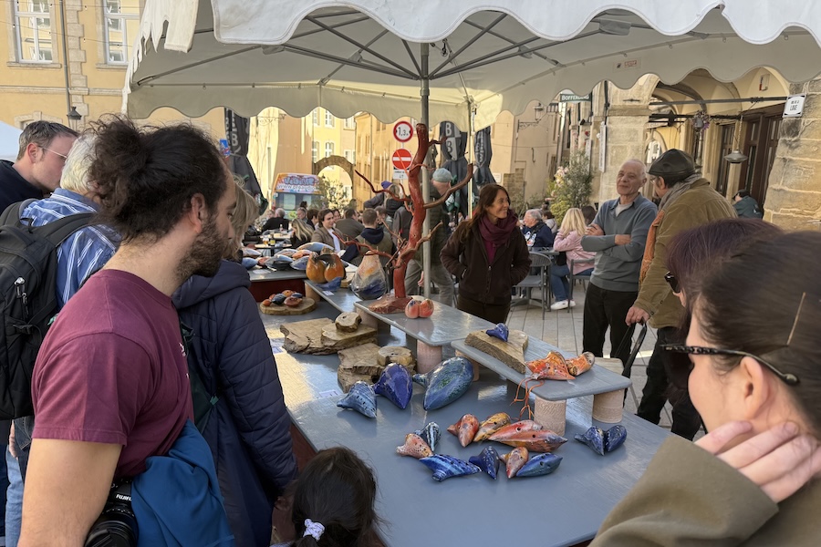 Enjoying sunny and dry weather, large crowds gathered throughout the day, with visitors of all ages exploring the many stalls featuring pottery and ceramics from Luxembourg and beyond, alongside a variety of handmade and artisanal goods. In total, the market featured 22 “Péckvillercher” stands, 23 pottery and ceramics stands and 22 craft stands, alongside a selection of food, drink and other vendors. As always, the main attraction was the wide range of “Péckvillercher”, uniquely decorated ceramic bird whistles, traditionally sold only on Easter Monday in Luxembourg. Their distinctive sounds could be heard across the city centre as visitors tested their newly purchased pieces.