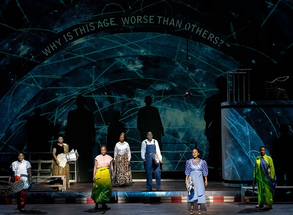 "Blending opera, theatre, dance and Kentridge's signature visual artistry, this chamber opera is a tapestry of languages, music and histories. The Chorus of Seven Women forms the spiritual heart, giving voice to displaced people across time. The production integrates projections, masks and shadow play with Mahlangu’s vibrant choral score. A unique theatrical experience, part play, part oratorio, evoking the weight of exile and migration while celebrating the transformative power of art and human connection."