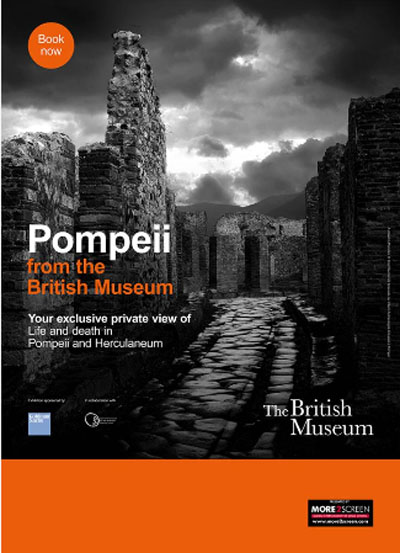 Details: Pompeii from the British Museum is an exclusive private view of the British Museum’s blockbuster show Life and death in Pompeii and Herculaneum focusing on the homes and lives of the inhabitants of the thriving industrial hub of Pompeii and the small seaside town of Herculaneum nearly 2,000 years ago when Mount Vesuvius erupted in 79AD.