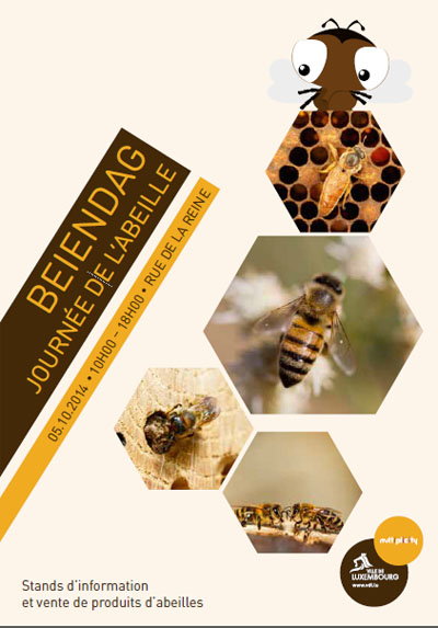 Also, 5 October 2014, from 10:00 - 18:00 at Rue de la Reine, Bee Day will be celebrated with information stands and the sale of bee products. Additionally, a conference organised by the Federation of Unions of Beekeepers of the Grand Duchy of Luxembourg (FUAL) for beekeepers and the public will be held in the morning at the Cercle Cité Auditorium.