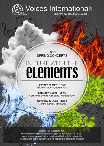 Details: Voices International has annoucned a series of three spring concerts entitled "In Tune with the Elements" that will take place between the end of May and the middle of June.