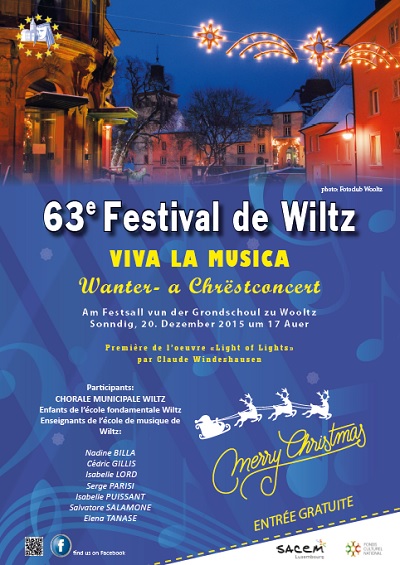 Details: The Festival de Wiltz is organising a Winter and Christmas Concert entitled "Viva la Musica" on 20 December at 17:00 at the primary school in Wiltz.