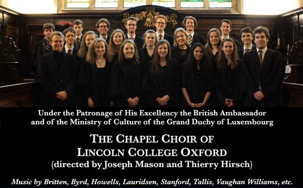 The Chapel Choir of Lincoln College Oxford, directed by Joseph Mason and Thierry Hirsch, is in Luxembourg this week for a series of concerts.
