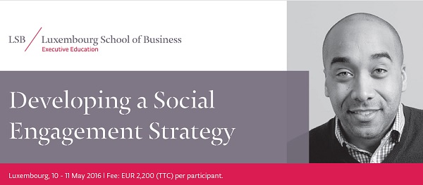 Details: The Luxembourg School of Business (LSB) is organising a new workshop entitled "Developing a Social Engagement Strategy" which will take place in Luxembourg on 10 & 11 May 2016.