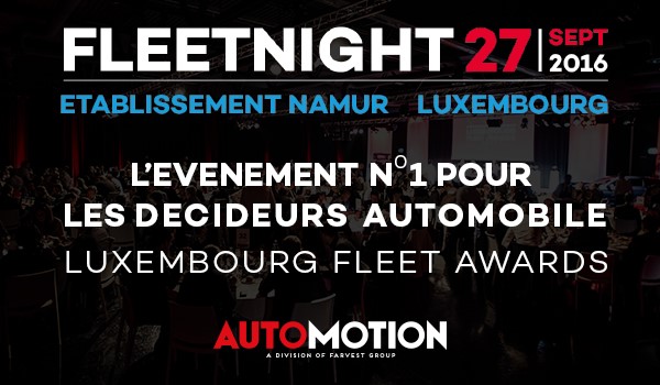 Details: FleetNight 2016, including the Luxembourg Fleet Awards, will be hald at the Espace Namur in Luxembourg-Hamm on Tuesday 27 September 2016, in an event organised by Farvest.