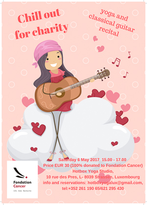 Details: Chill out for charity, a yoga session followed by a classical guitar performance, from which all proceed will go to the Fondation Cancer.