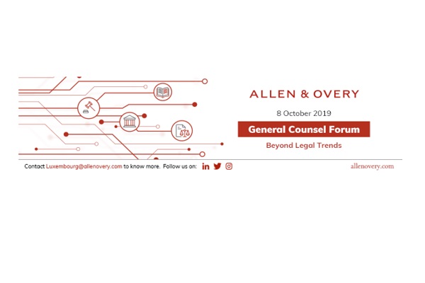 International law firm Allen & Overy will be holding the first General Counsel Forum in Luxembourg on Tuesday 8 October 2019 at its offices in Luxembourg-Kirchberg.