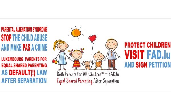 FAD – Fathers Against Discrimination a.s.b.l. "Both Parents for All Children™", the tagline of which is "Both Parents for All Children™", has described itself as a Luxembourg platform for dialogue to raise awareness of gender inequality, especially the discrimination of fathers in Luxembourgish institutions and courts (in the Luxembourg Family Law).